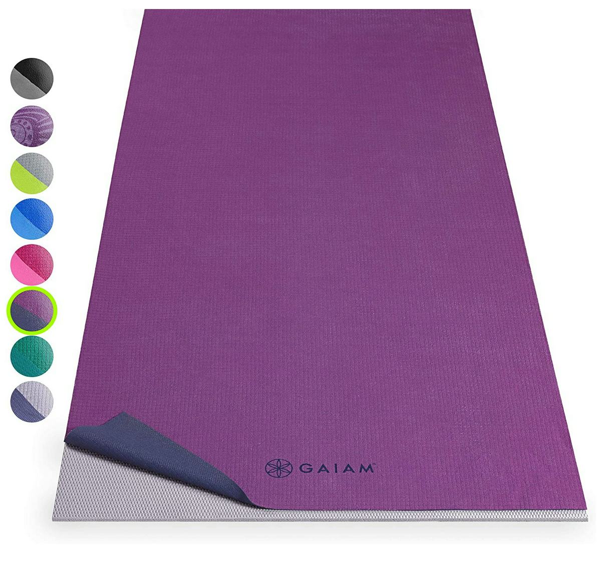 This two-tone Gaiam stunner is just 1.5 millimeters thick (that's thinner than a quarter) and can be folded or rolled up for easier transport. Though it's super lightweight, it does not skimp on ability to mop up sweat and keep you grounded. The towel has microfiber on top for sweat absorption and a rubber bottom for stickiness. Reviewers have found it supportive enough to double as a thin yoga mat while traveling, as one recommended "use it on top of the carpet in a hotel room. Works great for this." It's machine washable but will need to be air-dried flat. Get it in give color combos.